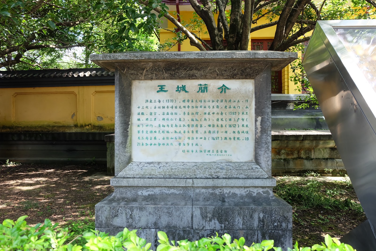 “王道:王府600多年前鋪設的青石板路,舊時為身份、權力、地位的象徵,只有尊貴的王爺、王妃可走,王道是整個王城的中軸線,亦為桂林市的中軸線,桂林城市以此為中心,向四周輻射開來。”