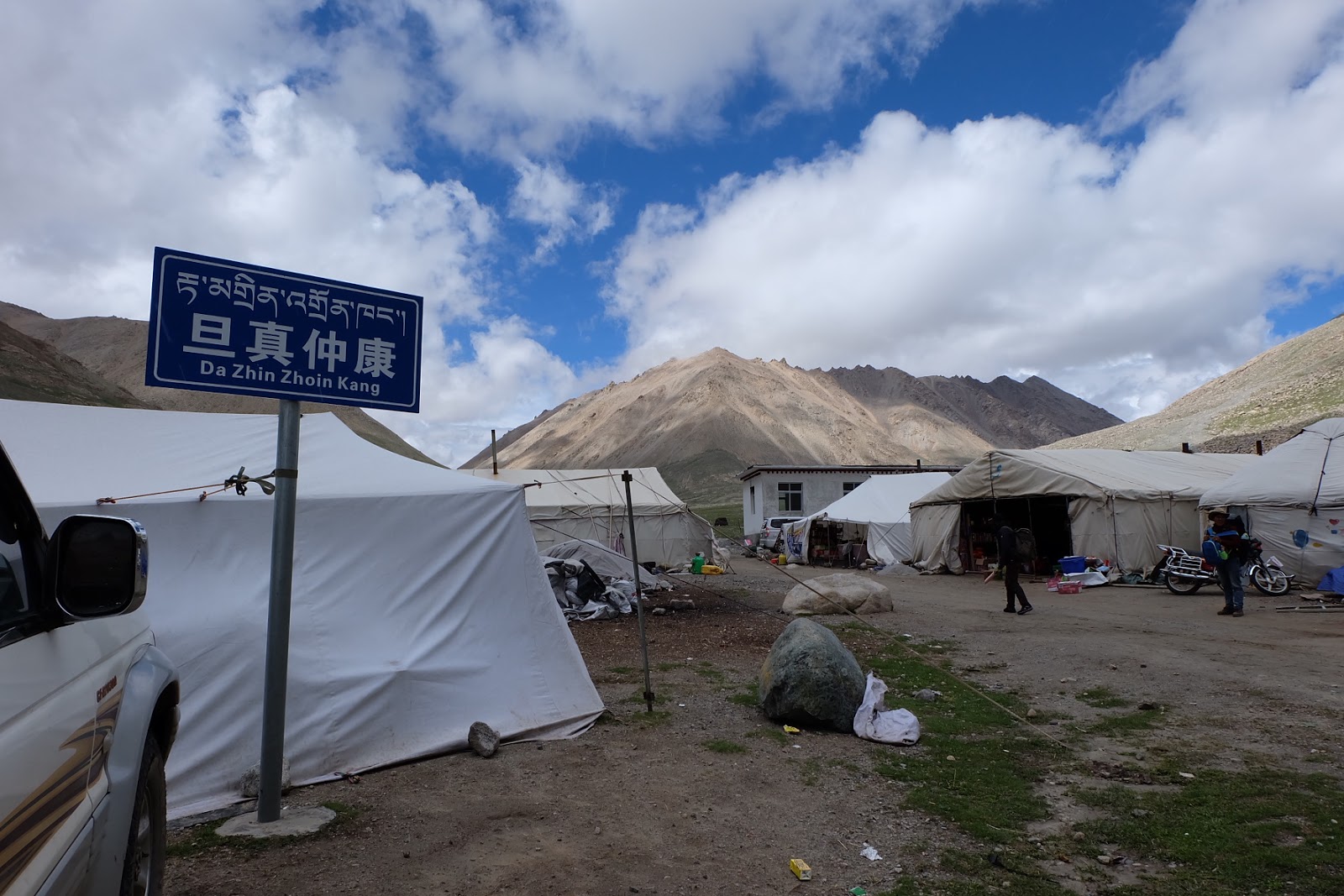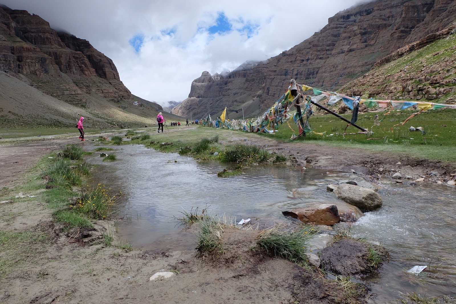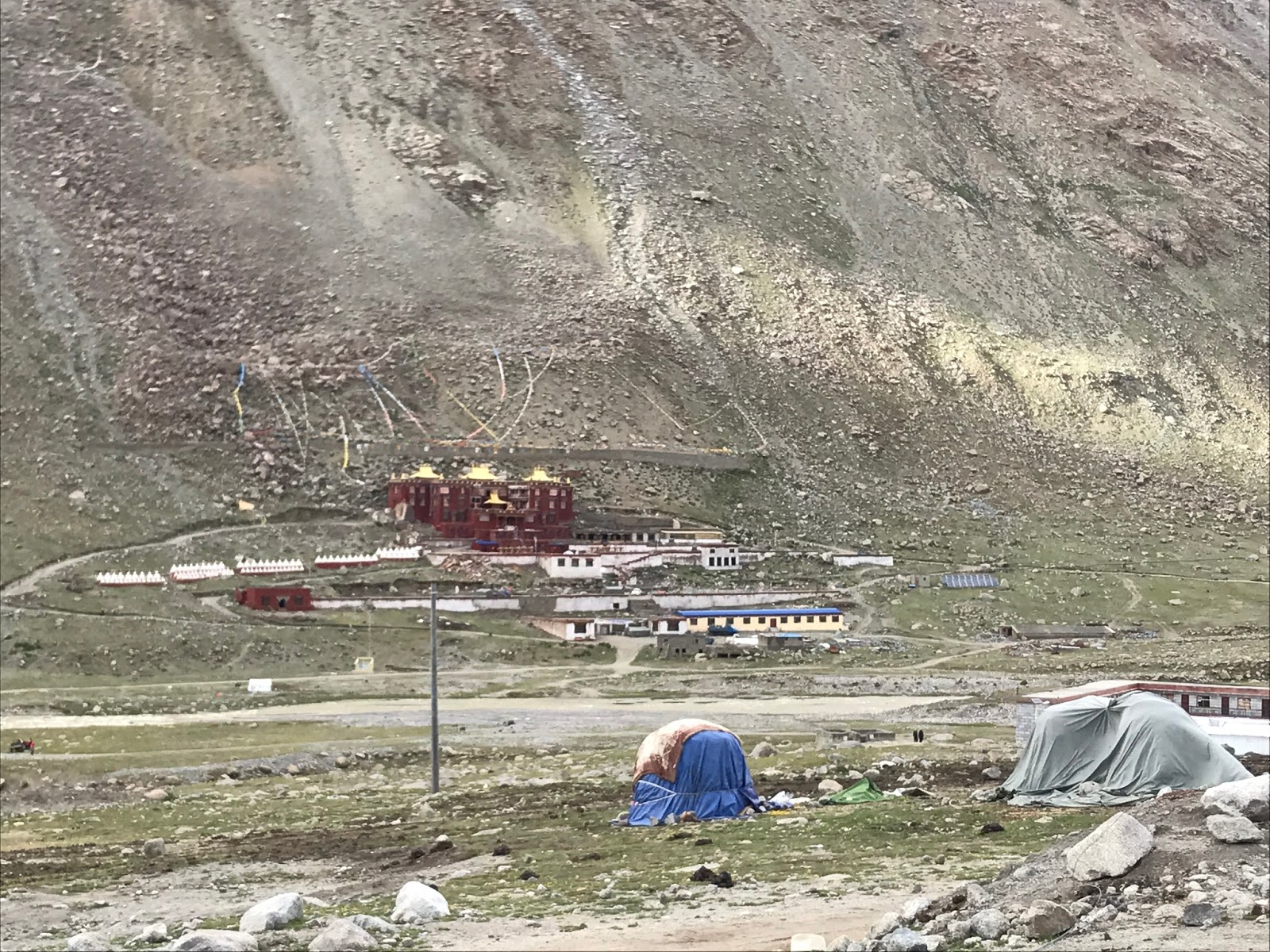 目前的山路都還是可以開車進來,山徑旁還有搭帳篷的藏人們。我猜測是轉山團的支援隊。