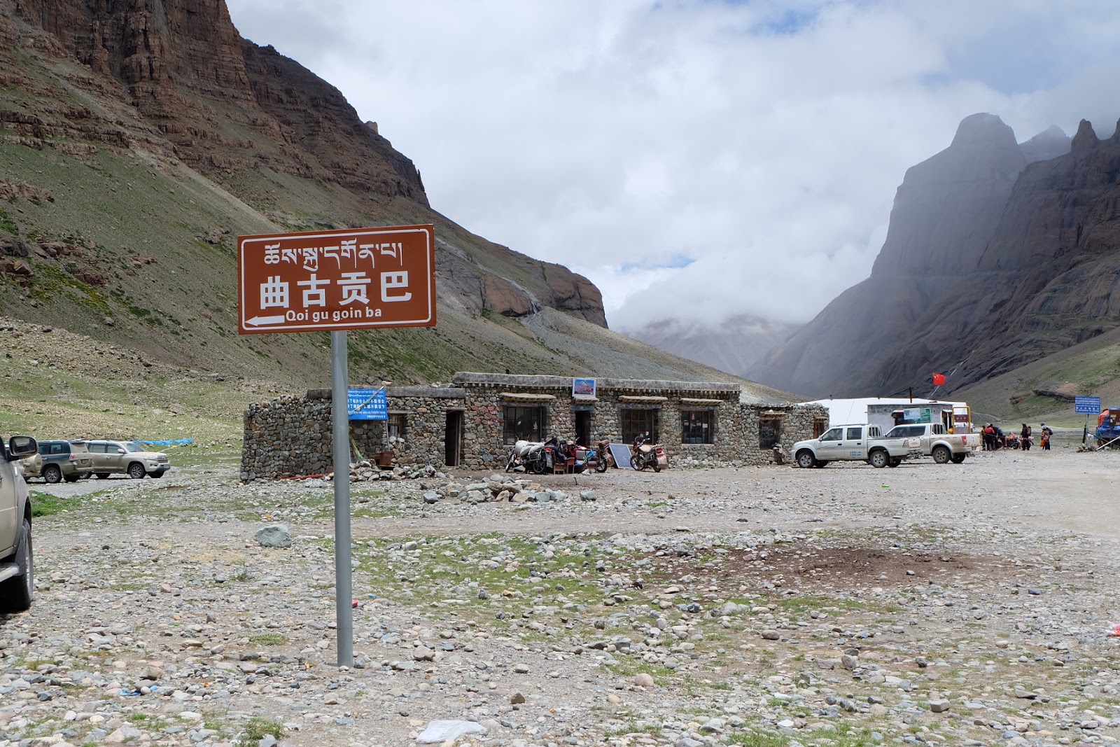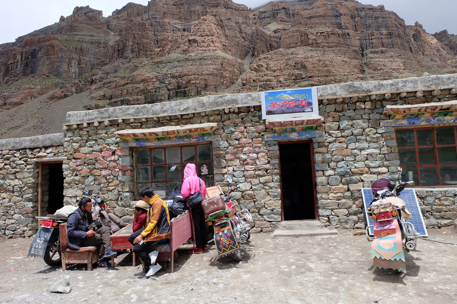 走了三小時,來到曲古貢巴,吃午餐。一走進茶館的左手邊,就看到大大小小的熱水瓶,還有成堆的泡麵;右手邊就是成排的桌椅,我們下背包放在角落,隨意找個位子坐下,叫上一壺我最愛喝的甜茶,暖暖身體先,然後泡了一碗泡麵,結束今天的午餐。