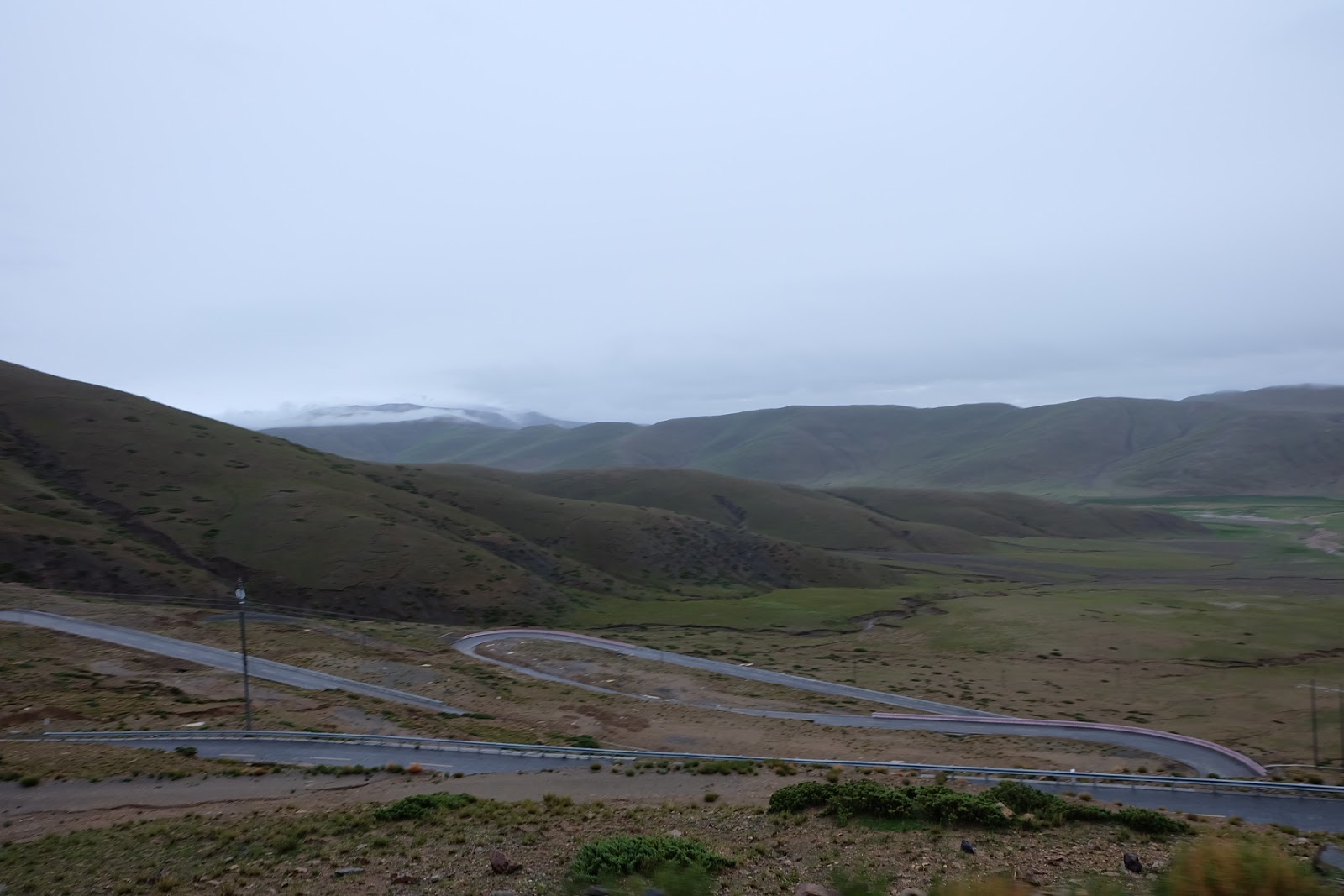 早上的天氣都陰雨綿綿,蜿蜒的山路容易打滑,為了安全起見,車速緩慢。整條路程沿著喜馬拉雅山脈的北側往西前進,濕漉漉的空氣,溢滿水的草原,四處都是積水,可以感覺夏季雨季的豐沛,小草的生命力,還有西藏高原上狂放夏牧景色。
