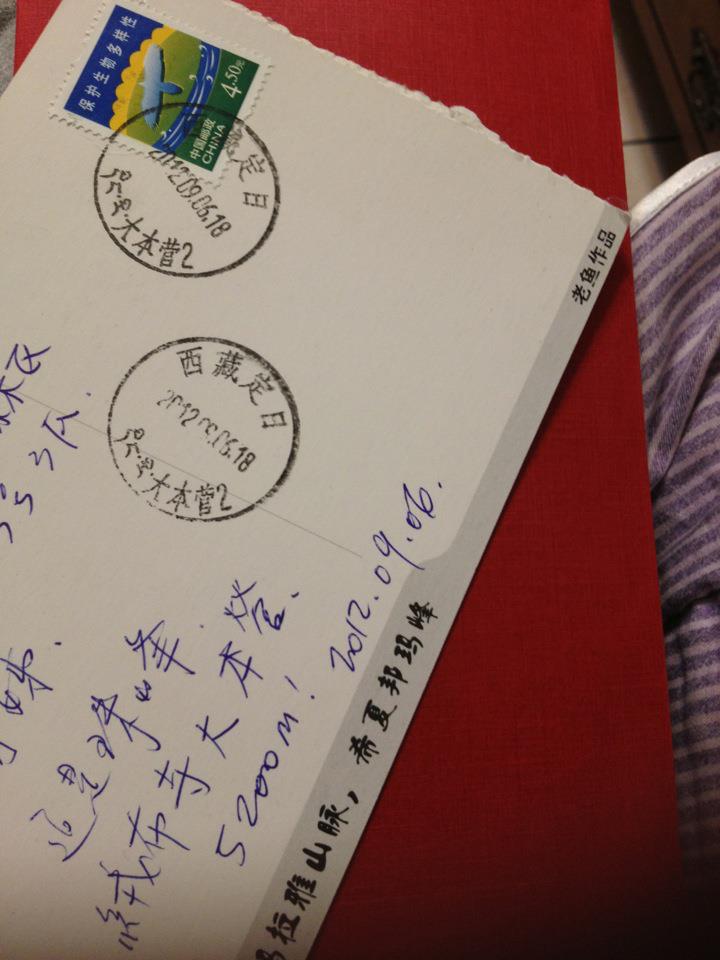 早上要離開大本營的時候,本來想去寄明信片,無奈大本營剛好沒有郵票,我們就只能蓋了郵戳,到了薩嘎寄。我五年前從大本營寄回台灣的明信片,可是有安全抵達呢!