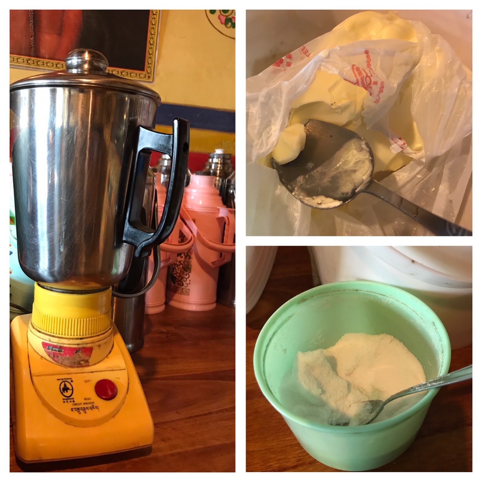 我還叫了一壺酥油茶。現在的酥油茶都是用果汁機打的了,真有趣。