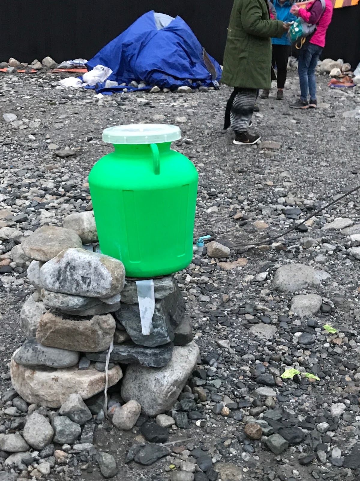 洗漱,就用店家的熱水,稍微涼了一點之後,在帳棚外面簡單刷牙。刷牙後的用水,直接回到大地。這一點讓我覺得景區應該可以做點什麼,來增加環境保護。畢竟是國際景區,世界最高峰就這麼一座,可以觀賞到世界最高峰的地方,全世界就兩處,一個在西藏,一個在尼泊爾。聽同行的友人說,尼泊爾的管理很有制度,我們一起討論,西藏的大本營區,為什麼沒有辦法弄得有制度一點,多一些環境保的意識。進入景區的門票也不便宜,要RMB180,這麼多的收入,應該可以規劃做點事情。