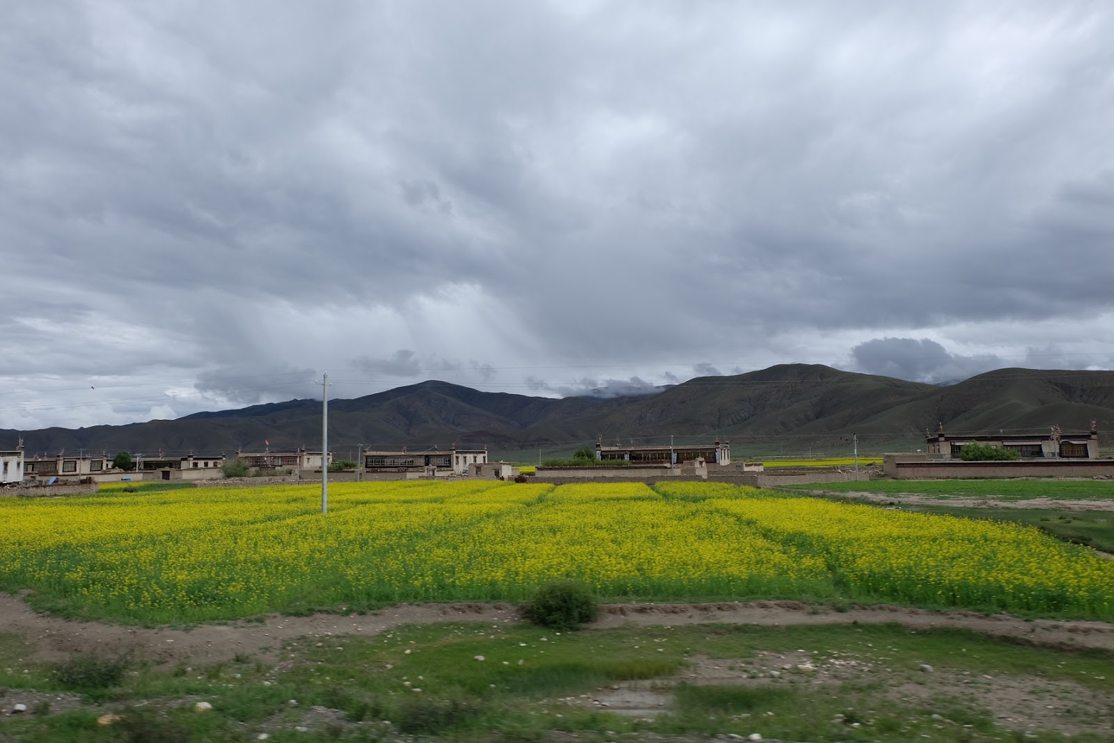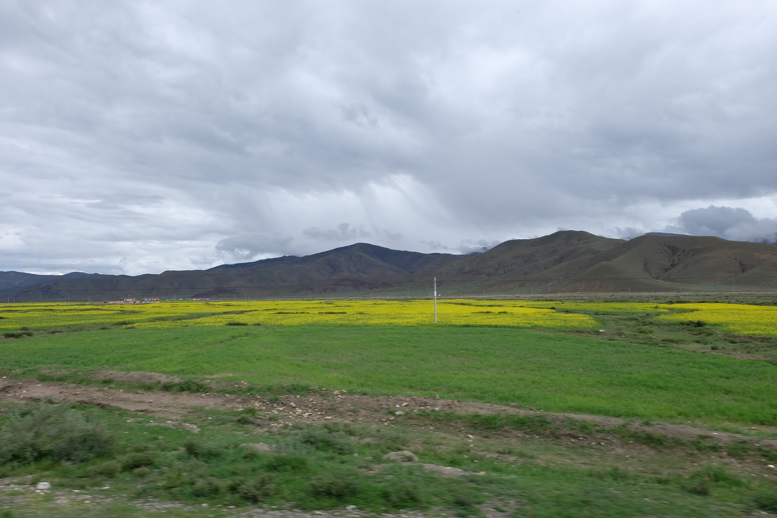 日喀則附近的青稞田,前一陣子灑滿了油菜花的種子,現在沿途都是滿山滿谷的油菜花田,金光閃閃,非常美麗。