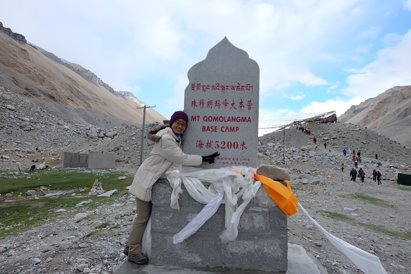 抵達大本營已經是七點半了,第一件事情就是和大本營海拔5200的石標照相。