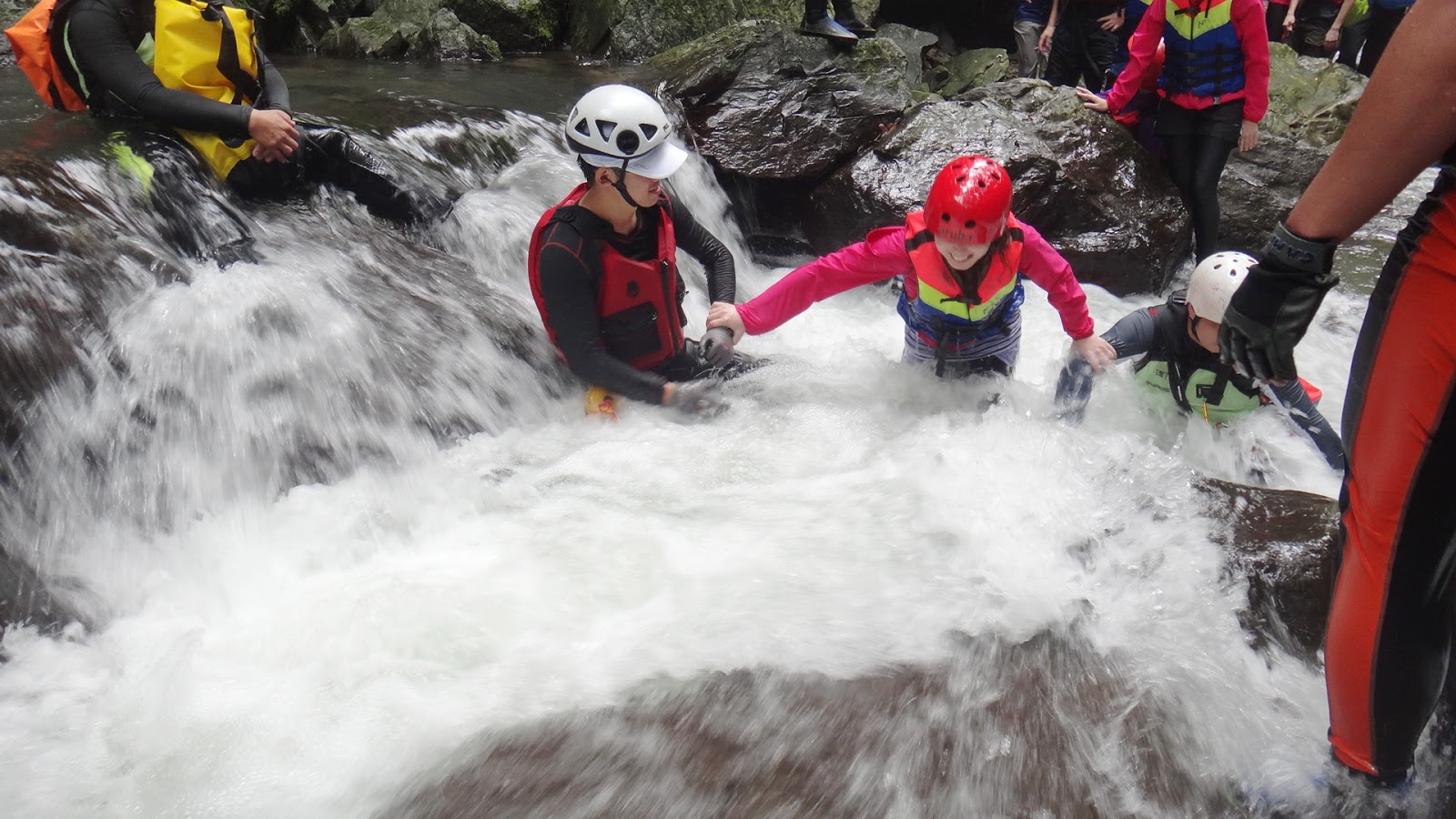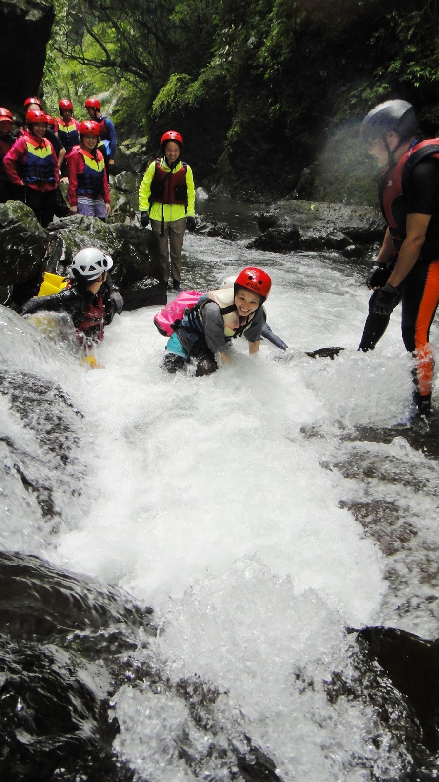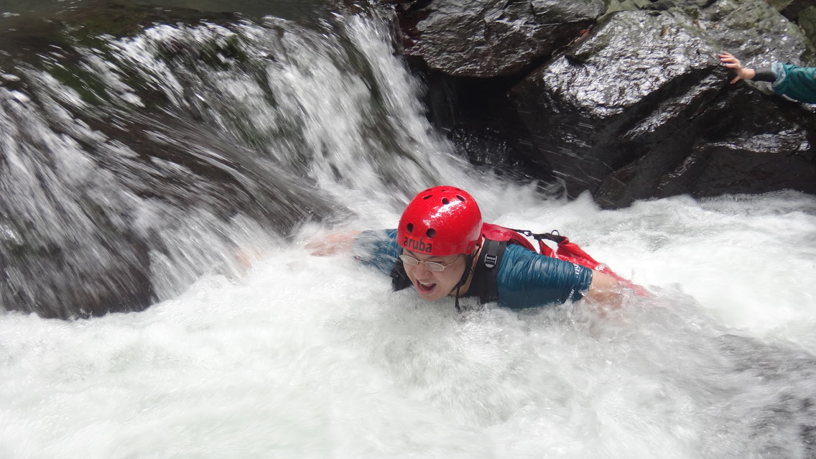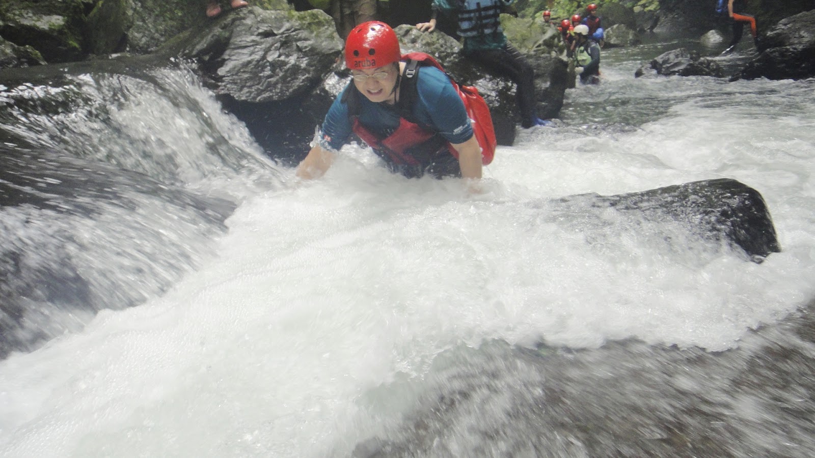 隊友很好。我很幸運有大家的支持,參與活動。大家在溯溪過程中互相幫忙,一起涉水、一起欣賞夏天綠蔭、一起在激流水花中前進、一起大笑、一起滑倒後又一起大笑前進。