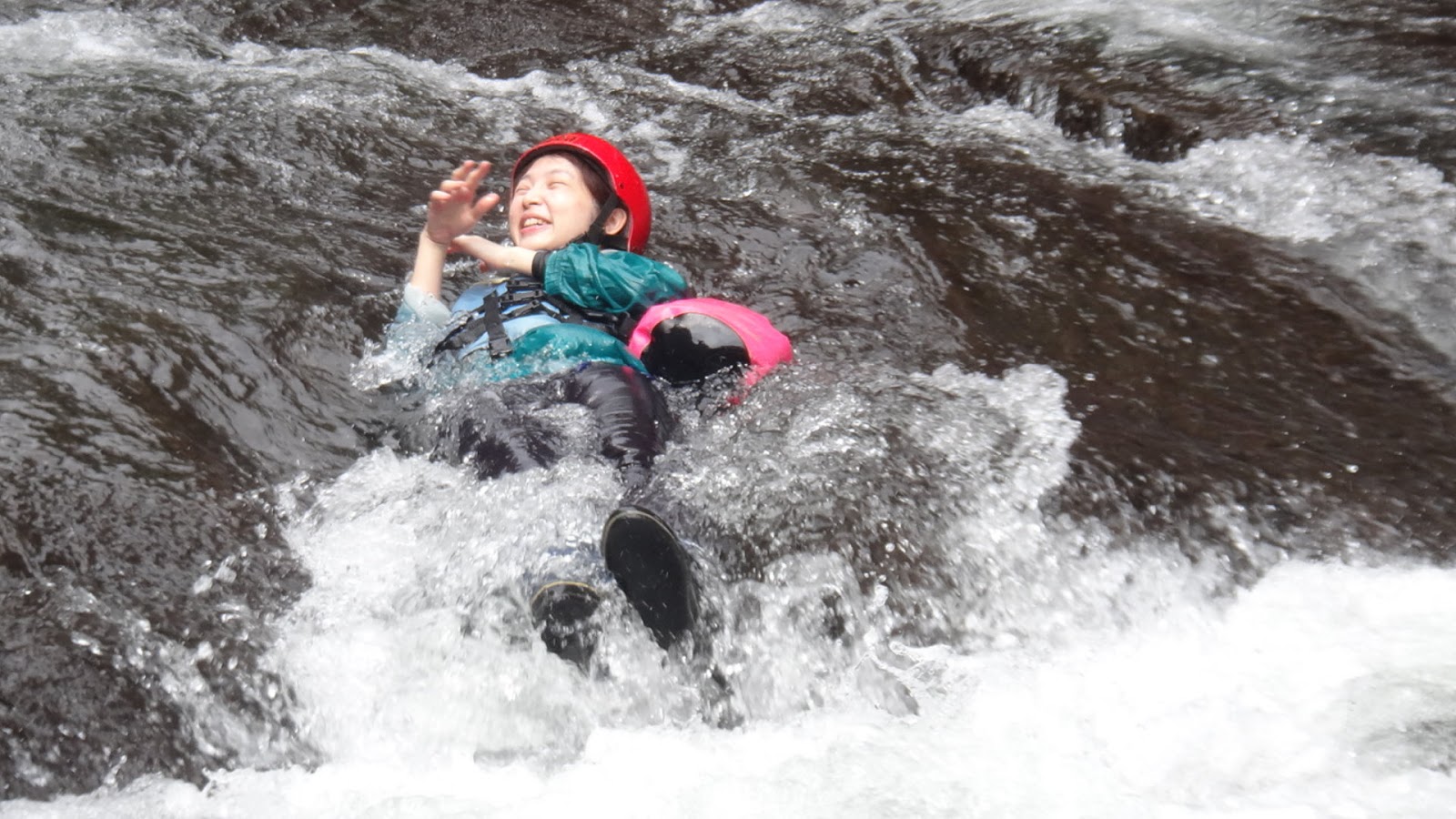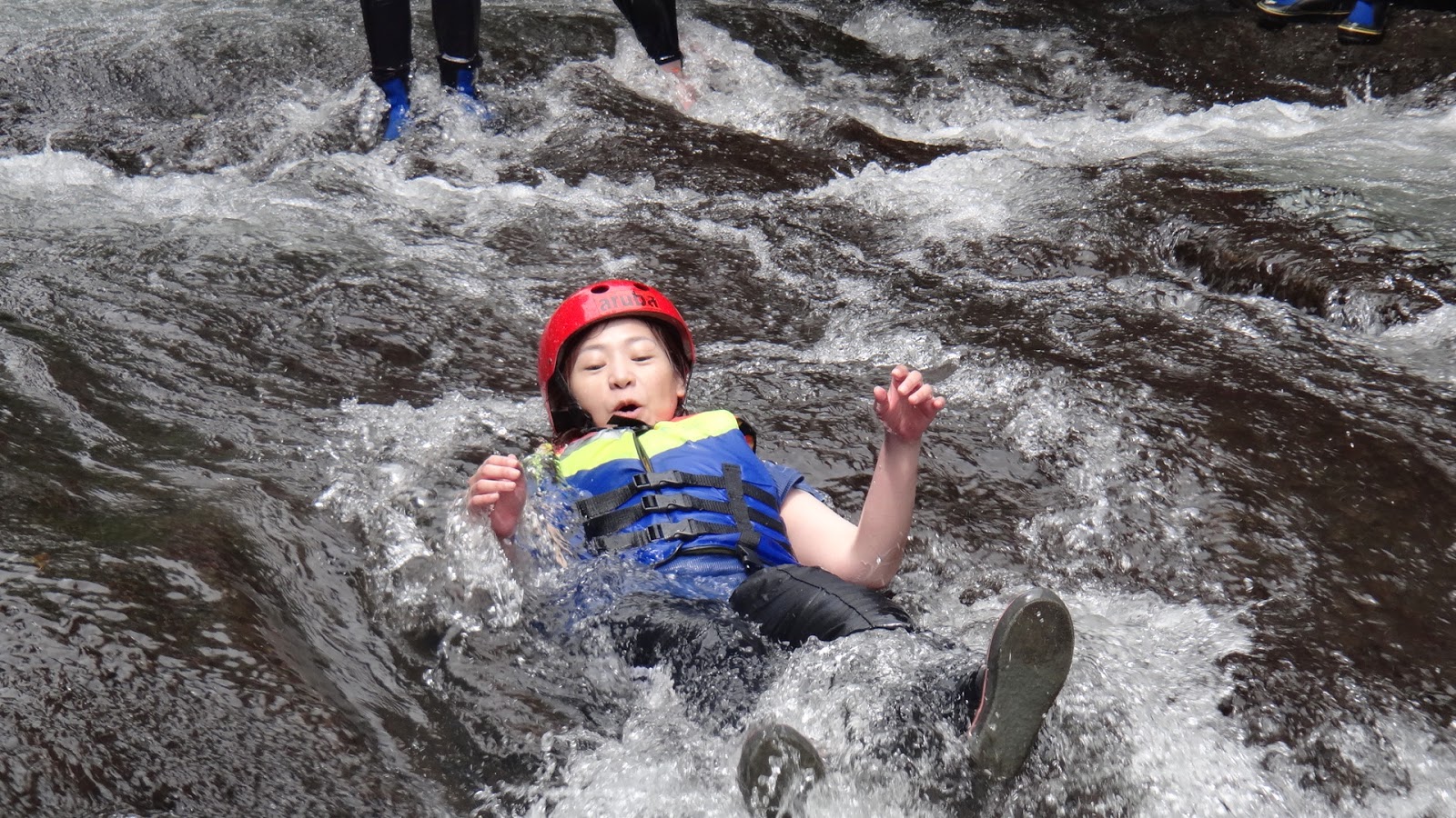 - 溪水千萬年沖擊石頭後,就成了天然的滑水道。是不是很久沒有溜滑梯呢? 看大家笑得多開心~