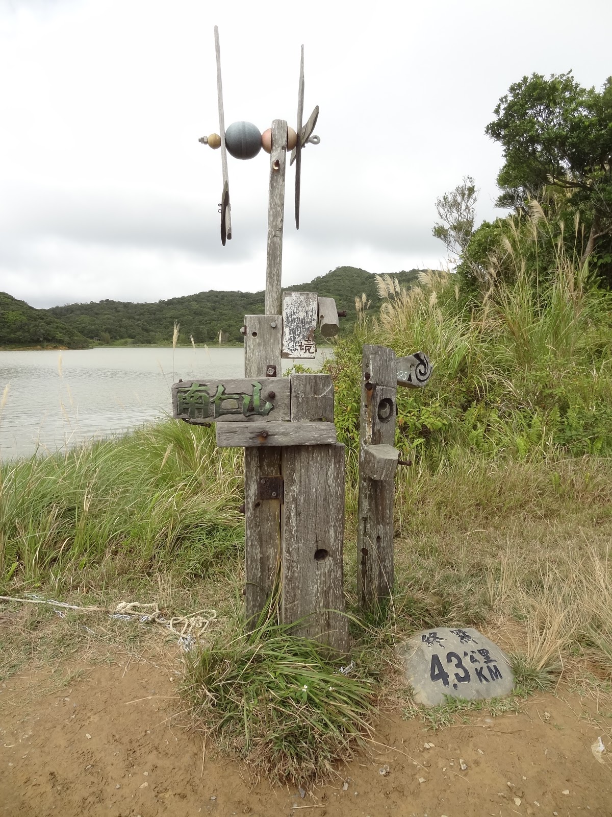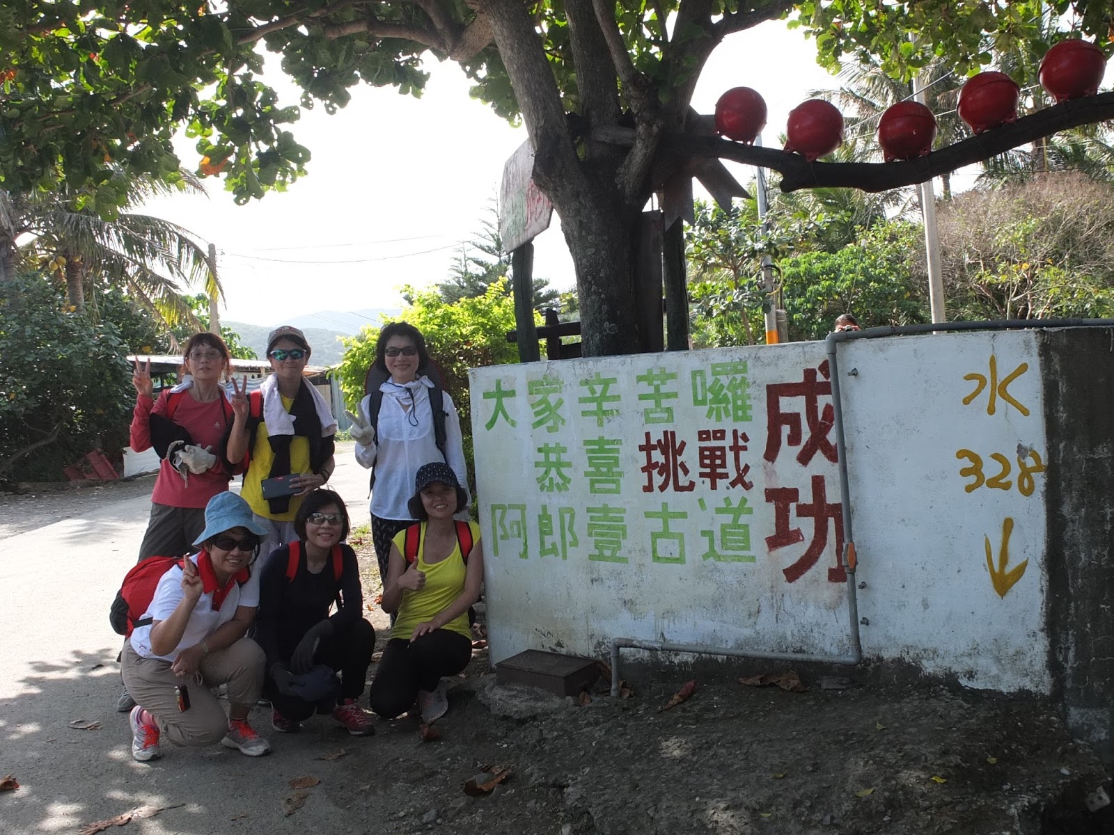 在山頂拍完合照後,大家繼續往前走一小段路,在南仁湖的4.3公里終點地標留影後,原路返回。