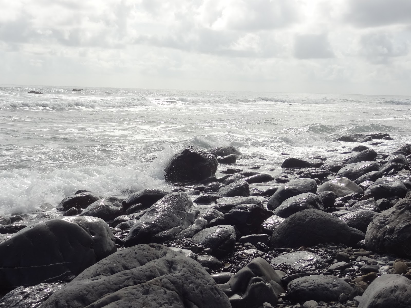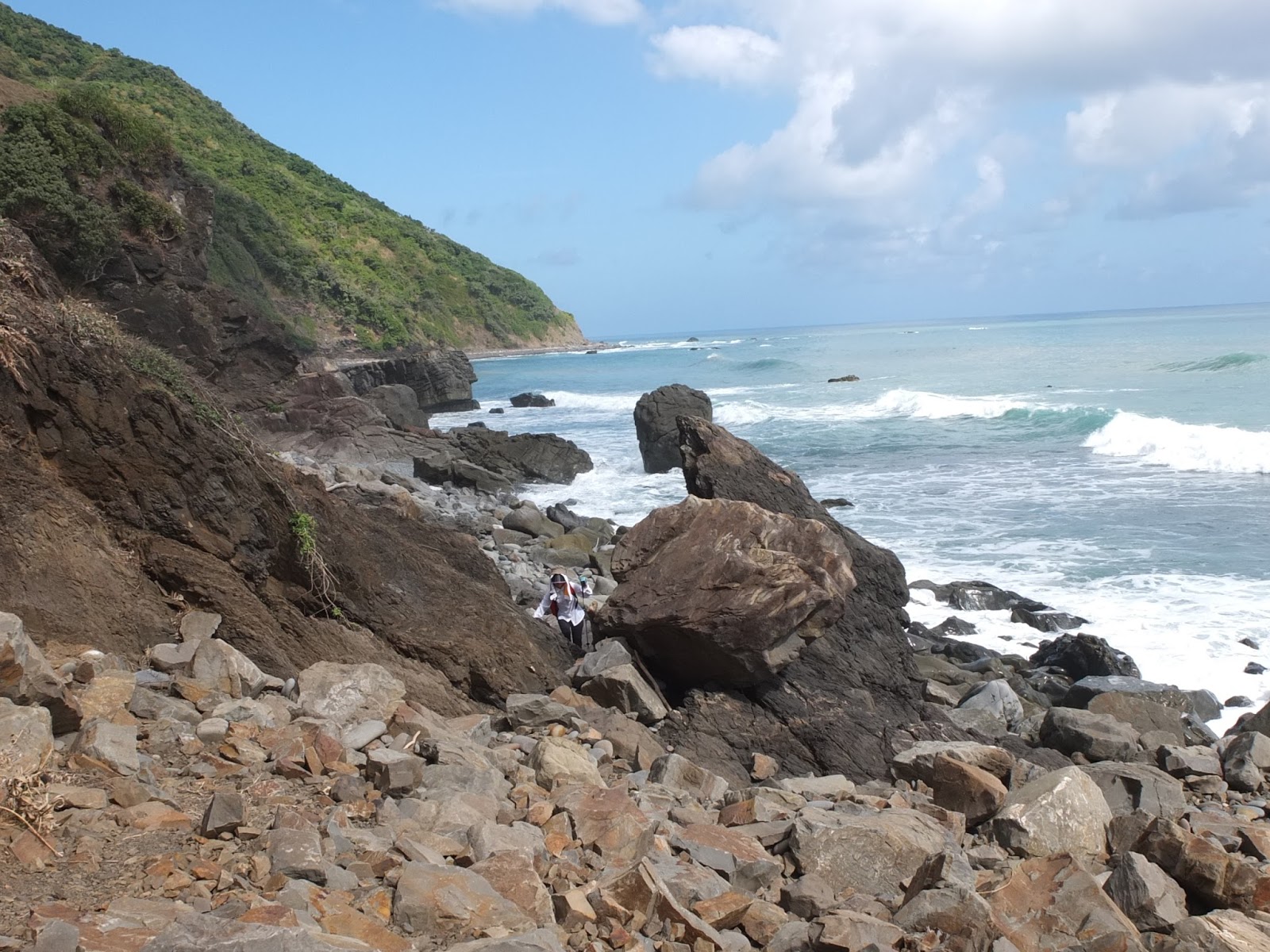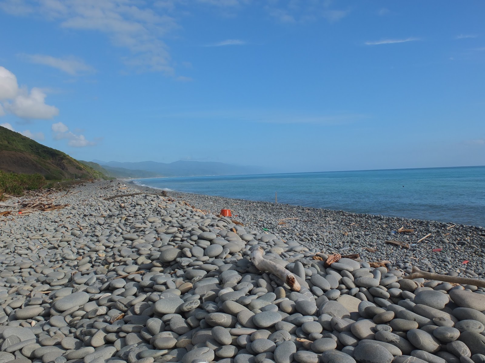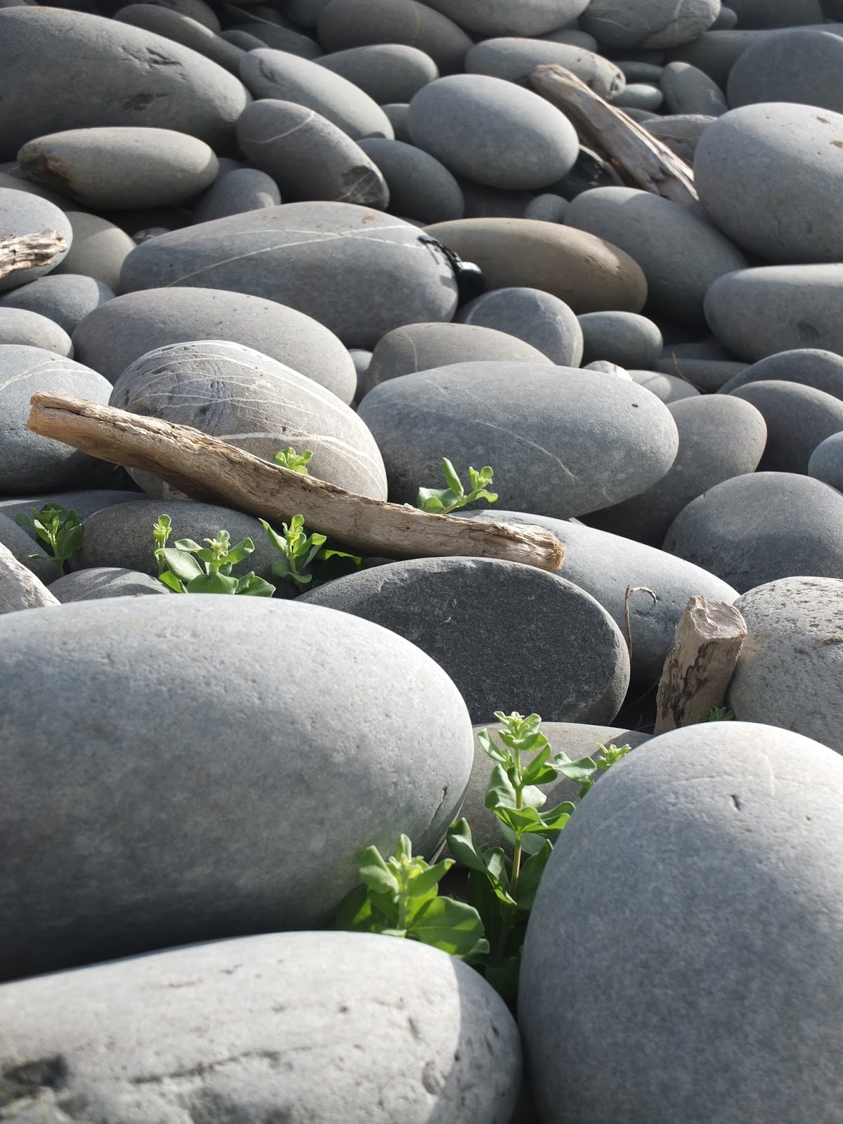 就是這個石!在其他人網誌的照片上看到的,就是這個石!海岸邊佈滿了大大小小的南田石,個個圓潤扁平,數大美感渾然生成。走這南田石海岸,要在腳下這顆石子晃動之前,就趕緊跳往一個落腳點。一路這樣蹦蹦跳跳,好似在玩跳石頭遊戲。一旁太平洋的浪潮,將岸邊南田石捲入海中、再沖回岸上,石子滾動撞擊著,發出轟隆隆地、特別響亮的加油聲,與一般沙礫海灘的浪潮聲不同,是另類「響」宴。