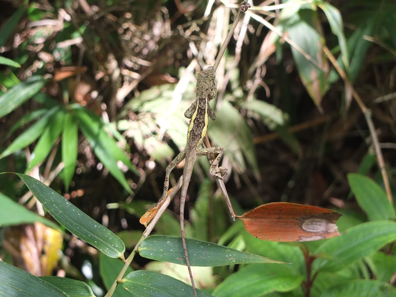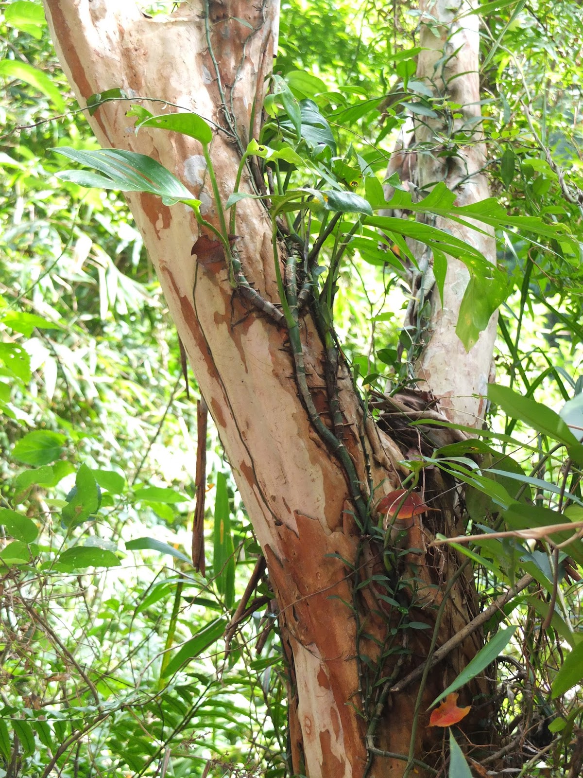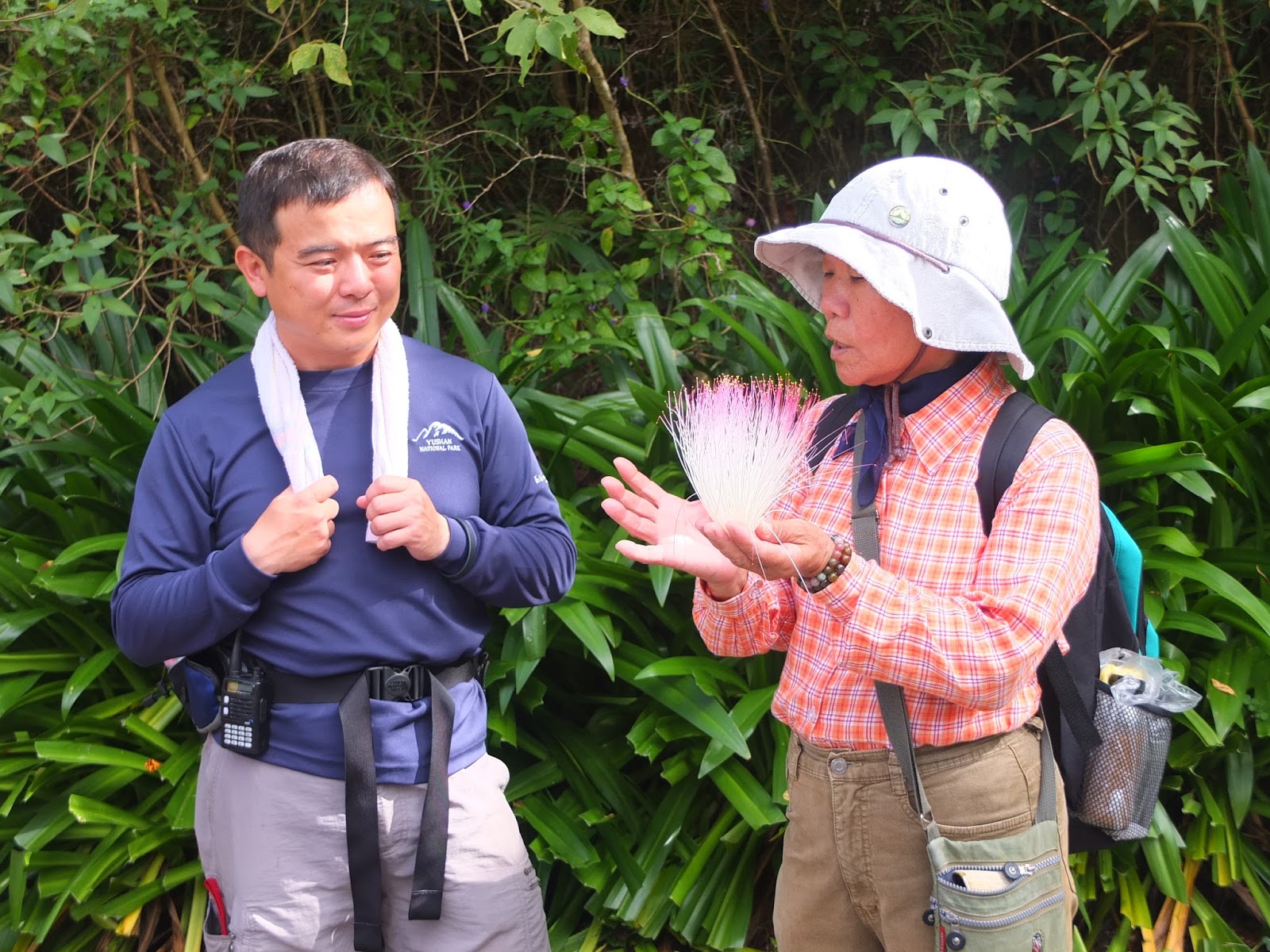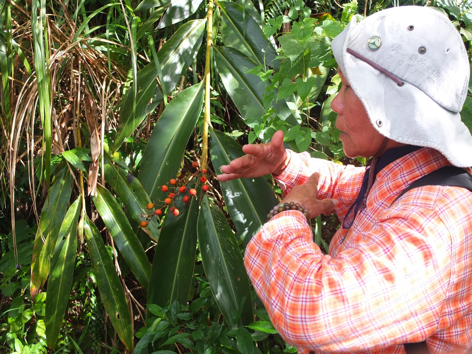 這樣一路走走停停、尋覓生物蹤跡、聽解說、拍照,走了近3小時後,終於到了南仁山山頂。另一隊早已在山頂納涼了好一陣子。拿出午餐,依著開闊的山湖景色,涼爽山風陣陣吹來,好不快意自在。