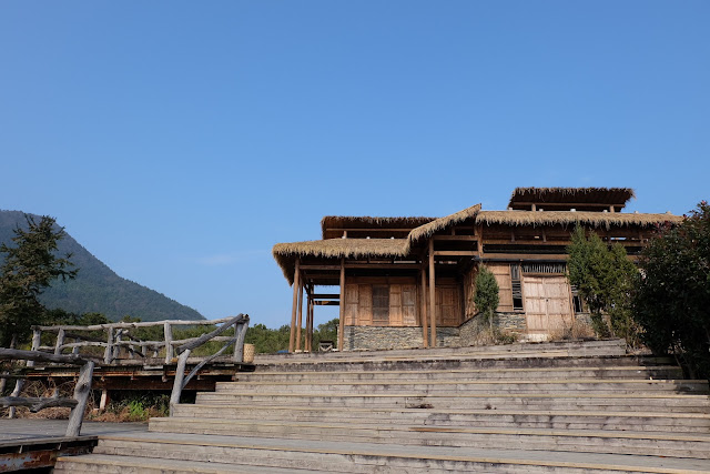 山頭的風很大,這是編號一的景觀台,一個人也沒有。這個景觀台可以清楚地觀賞到整個山谷和山谷下的村莊。冬季早上十一點的山谷,梯田和村莊籠罩在一種暗綠色的水氣中。其實我分不清楚這種暗色調,是尚未被陽光喚起的水氣,還是霧霾。