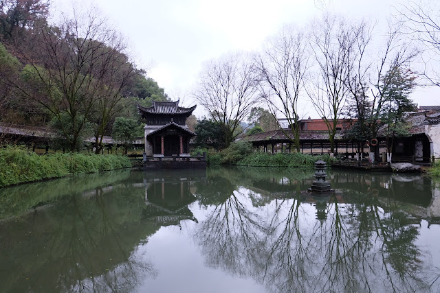 導航帶我們到舊的江灣遊客中心,停車場上只有我們一輛車。進了這個遊客中心,才發現江灣景區還要走十五分鐘左右才到查票口。查票口前也有停車場,儘管停車場的腹地不大,但因為遊客稀少,一旁的商店也都歇業休息,冷冷清清。