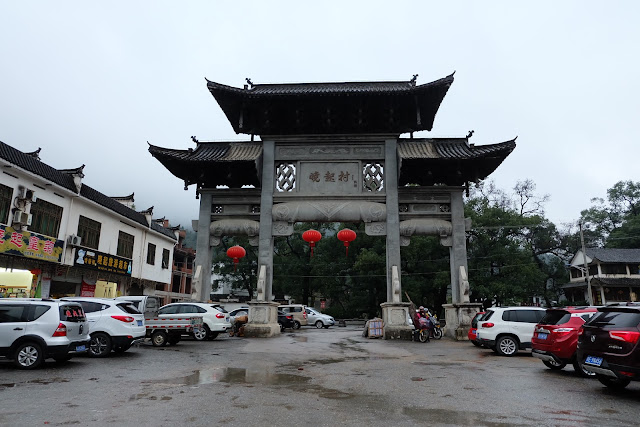 牌樓是徽式建築的特色之一。牌坊建在村口,是個3間4柱5樓式的結構建築。走過村前的廣場,穿過牌樓,就走進江灣。