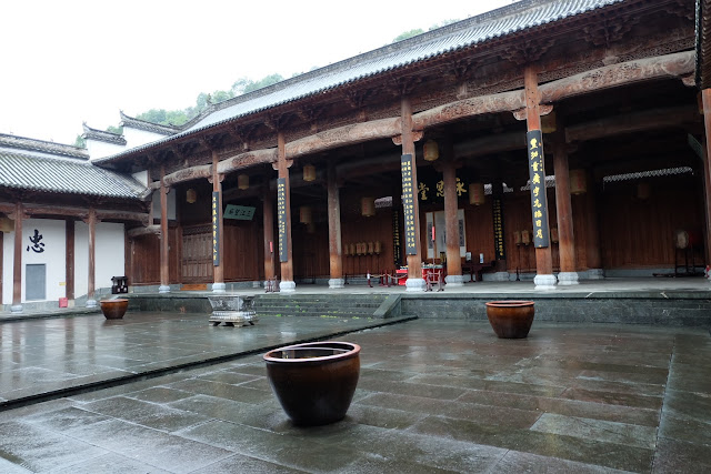 進入江灣這個村以前,會先經過蕭家宗祠。一般宗祠通常坐落在村莊的最中心、最裡面的位置,這家宗祠卻放在村前,門開著面對廣場,很是特別。這座宗祠後倚後龍山,不曉得風水上有甚麼含意。
