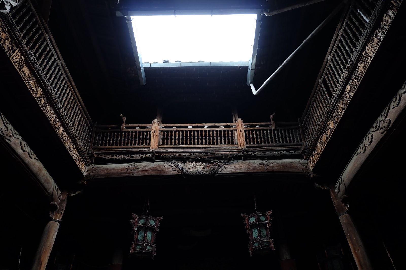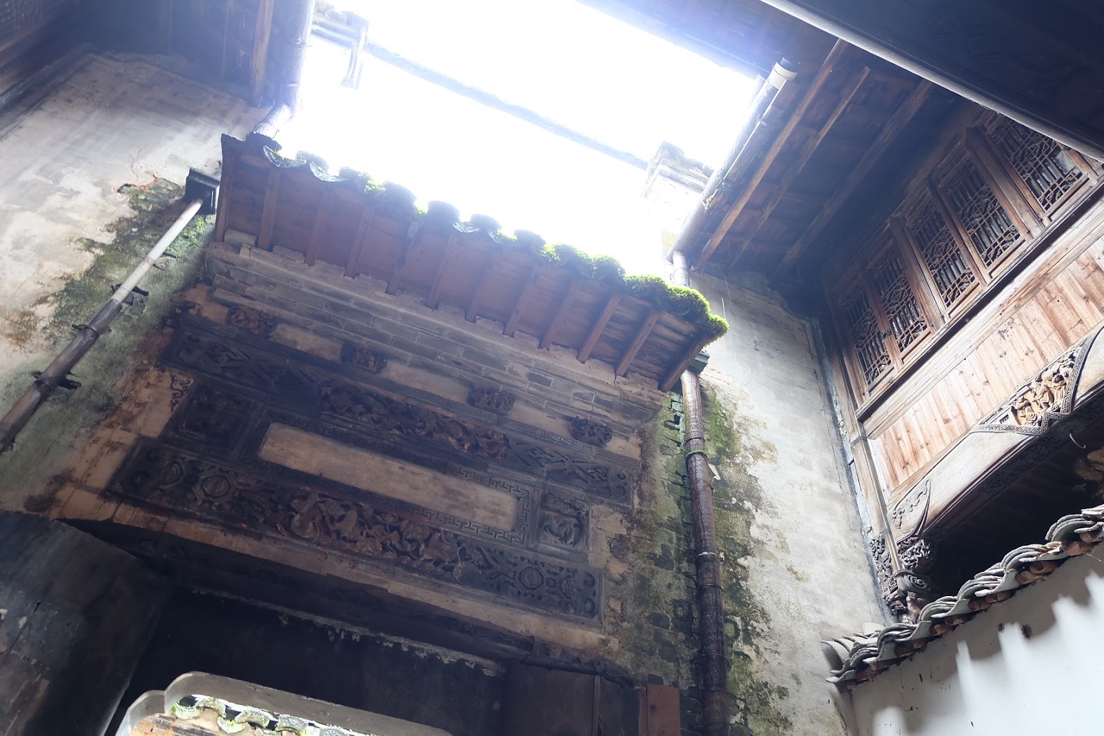 透漏著天光的天井、磚雕與青苔。