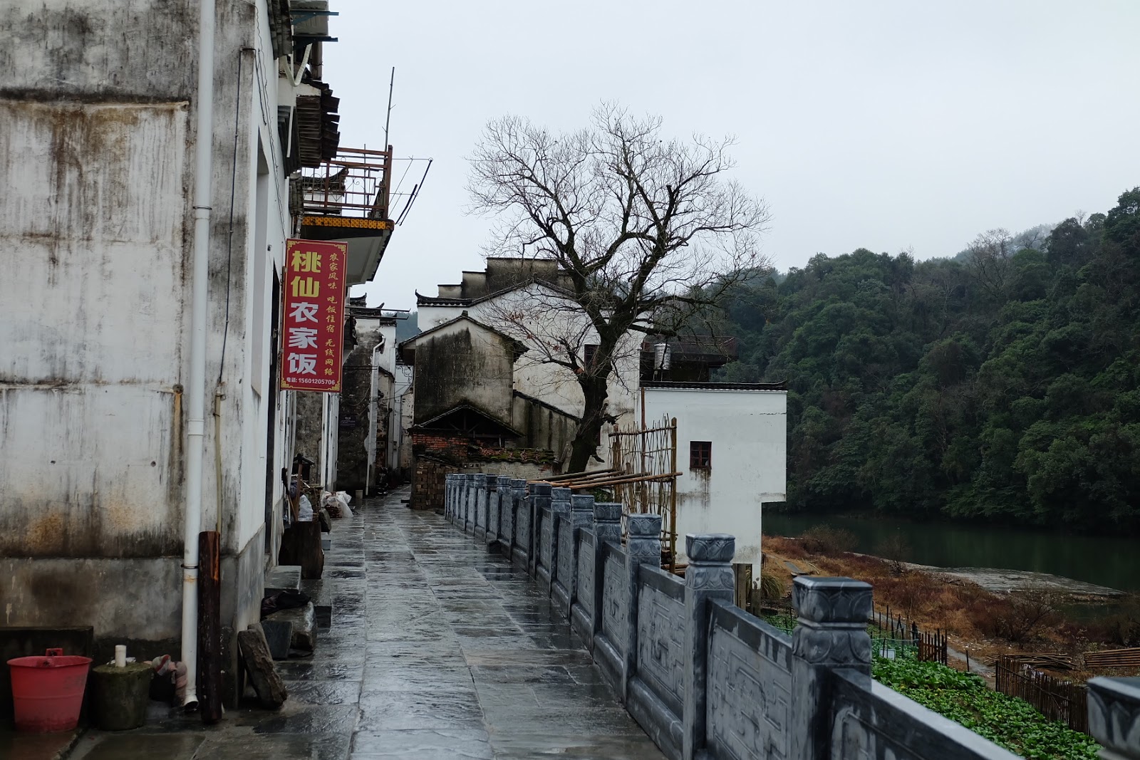 我們是在一個小寒/臘八前後的日子,拜訪這些藏在山壑中的村莊。天氣寒冷、遊客稀少,天色不佳,這「白牆、黛瓦、馬頭牆」著名的徽式建築,少了黃金花海或火紅秋葉的點綴,更少了爽朗的太陽與透徹的藍天撐起一片活力,顯得寂寥許多。