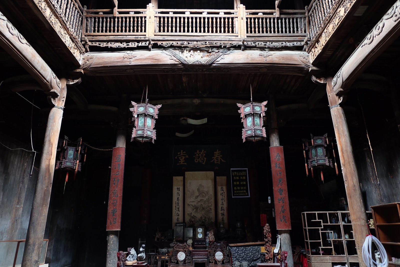二樓顯現的是木雕藝術。精緻的橫樑木雕,顯露出當年買官的富氣。
