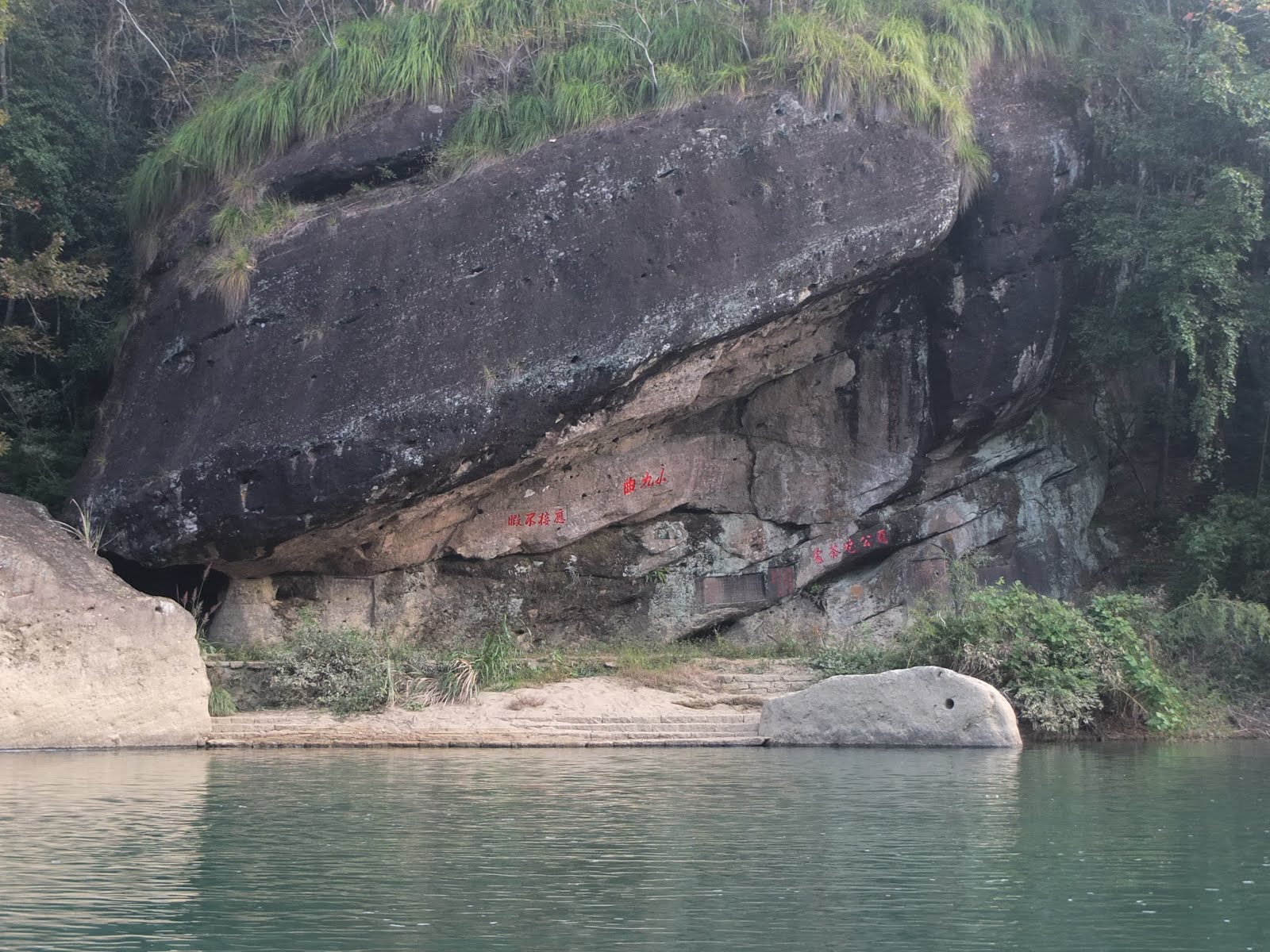 一曲 九曲溪的第一曲名為「碼頭石刻」。這裏是逆水而上的登筏處。碼頭旁有一巨石, 石壁上滿佈題刻,有「碧水丹山」「引人入勝」「漸入佳境」「智動仁靜」等句。