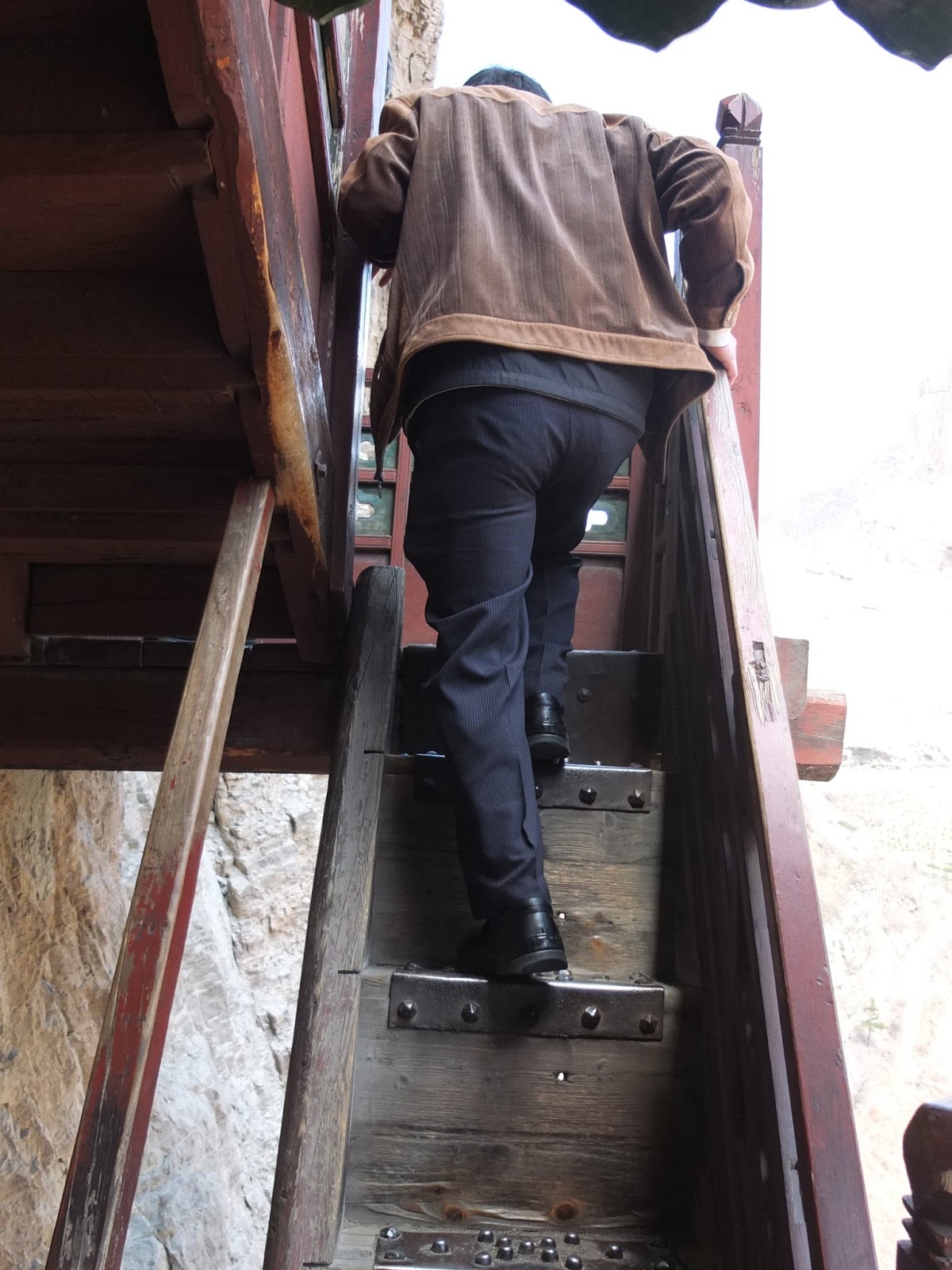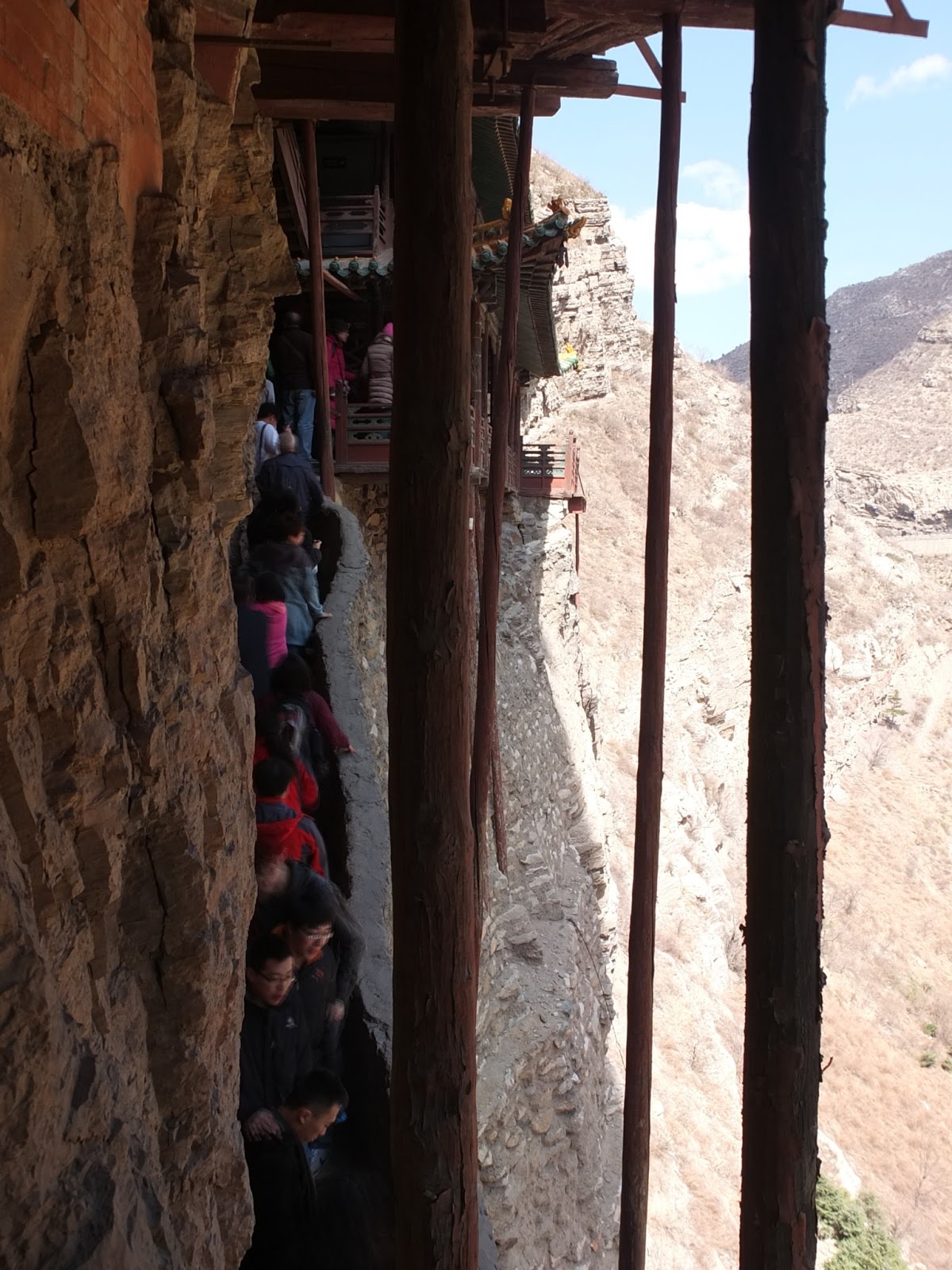 從遠方看到峭壁上的懸空寺站滿了旅客,心裏真的怕怕的,很擔心懸空寺隨時會因為承受不了旅客的重量而坍塌。但是既然來了,就要上去走一回。