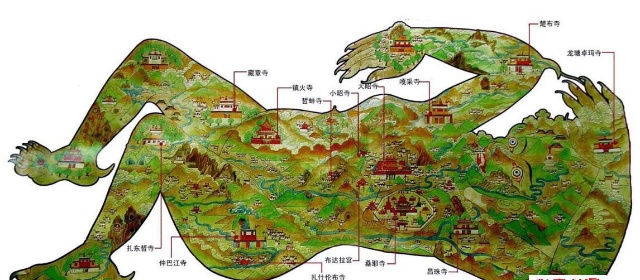 接著描述吐蕃英主松贊干布統一了青藏高原,從中原大唐和鄰國尼泊爾迎請兩國公主入藏,分別帶來了各自的本國文化。尼泊爾赤尊公主依照唐朝文成公主的五行八卦推算,以山羊駝土,填平臥塘湖,修建了著名的大昭寺。相傳西藏大地之下橫臥一位巨大的羅剎女,大昭寺供奉釋迦牟尼12歲等身佛像,正好鎮壓住了羅剎女的心臟。