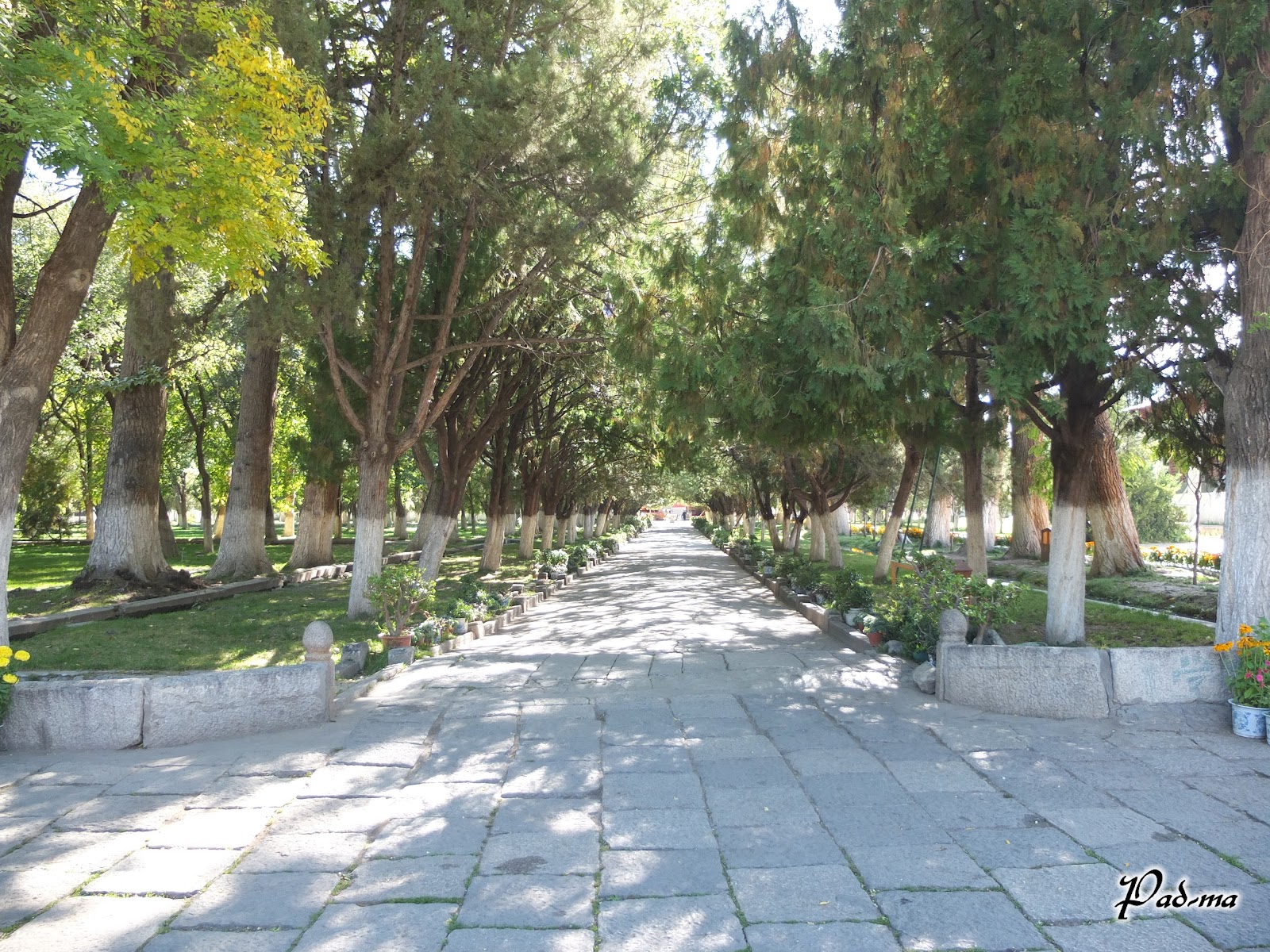 因為是歷代達賴喇嘛的夏宮,所以遍地大樹和美麗的花卉,非常怡人。大門口進去之後是一排繡球花,接著直接進入羅布林卡的主體—格桑頗章。