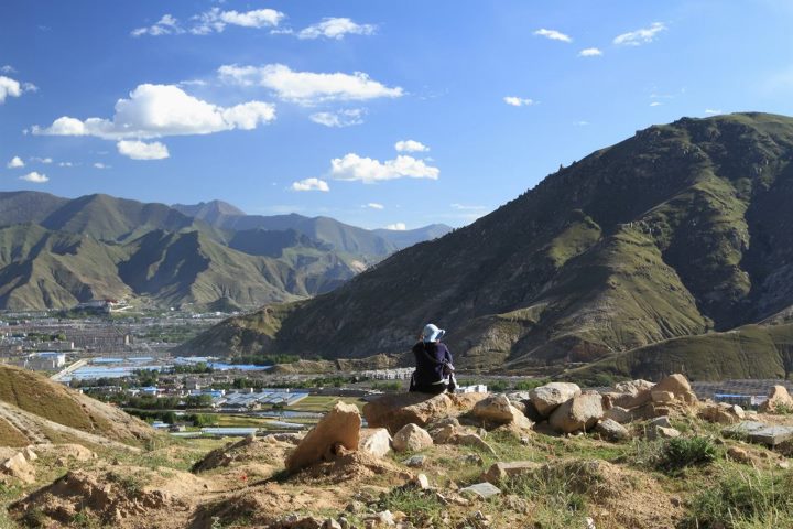 | 眺望拉薩盆地/尼瑪攝 (左後方山腳下紅色的地方就是布達拉宮~) |